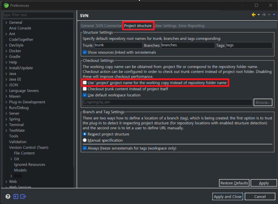 [Use '.project' project name for the working copy instead of repository folder name] ์ต์