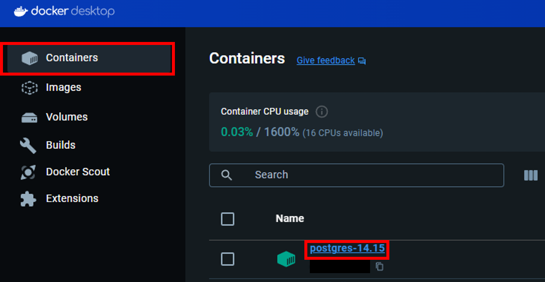 Docker Desktop ์คํ ํ Containers ํญ์ผ๋ก ์ด๋